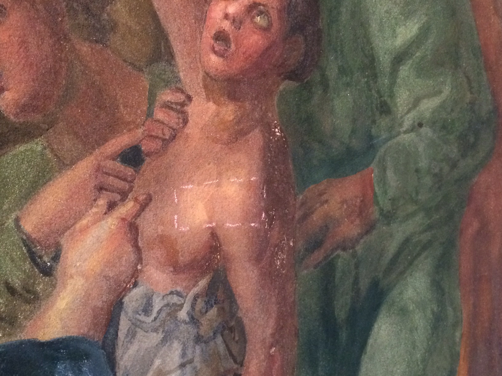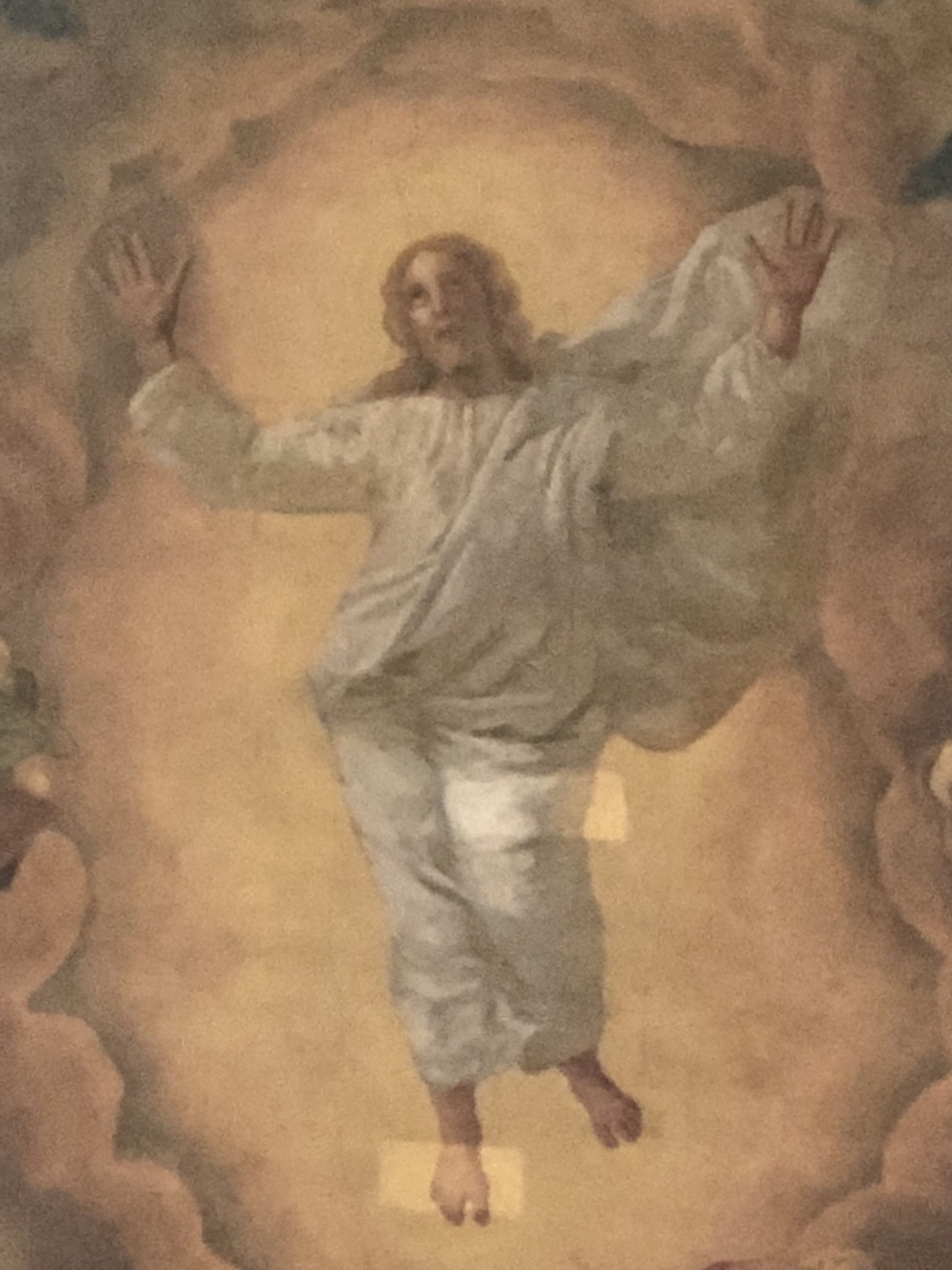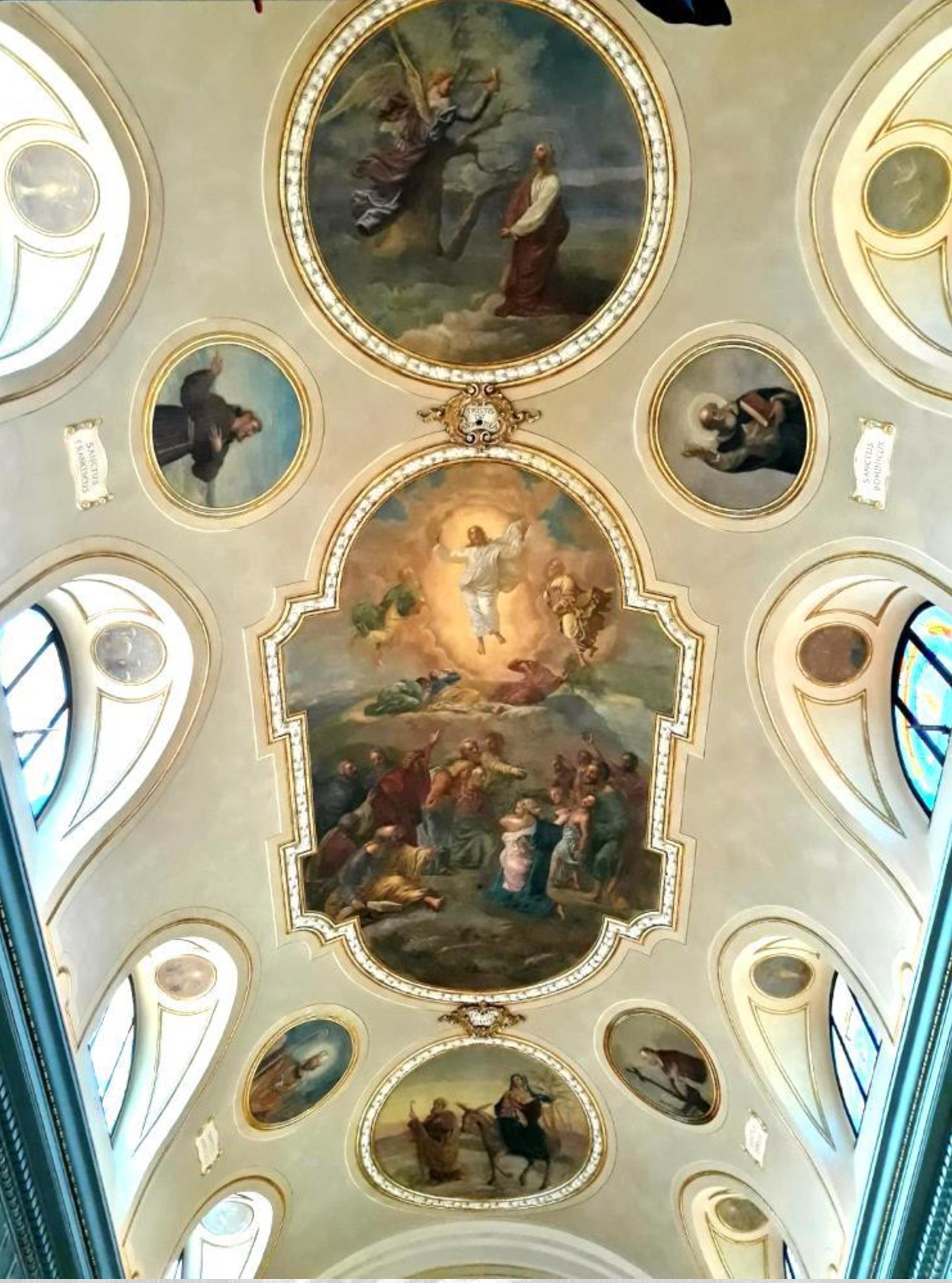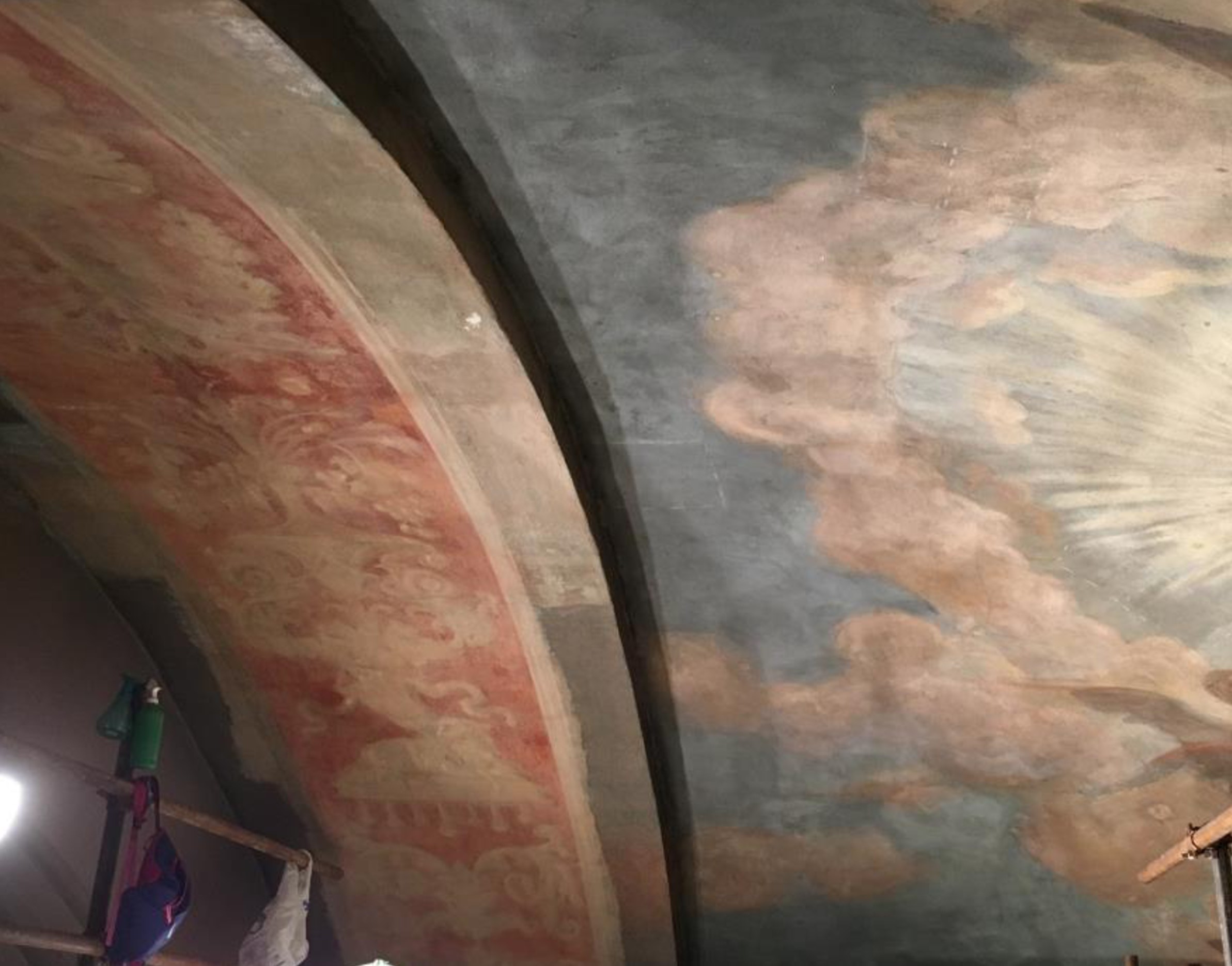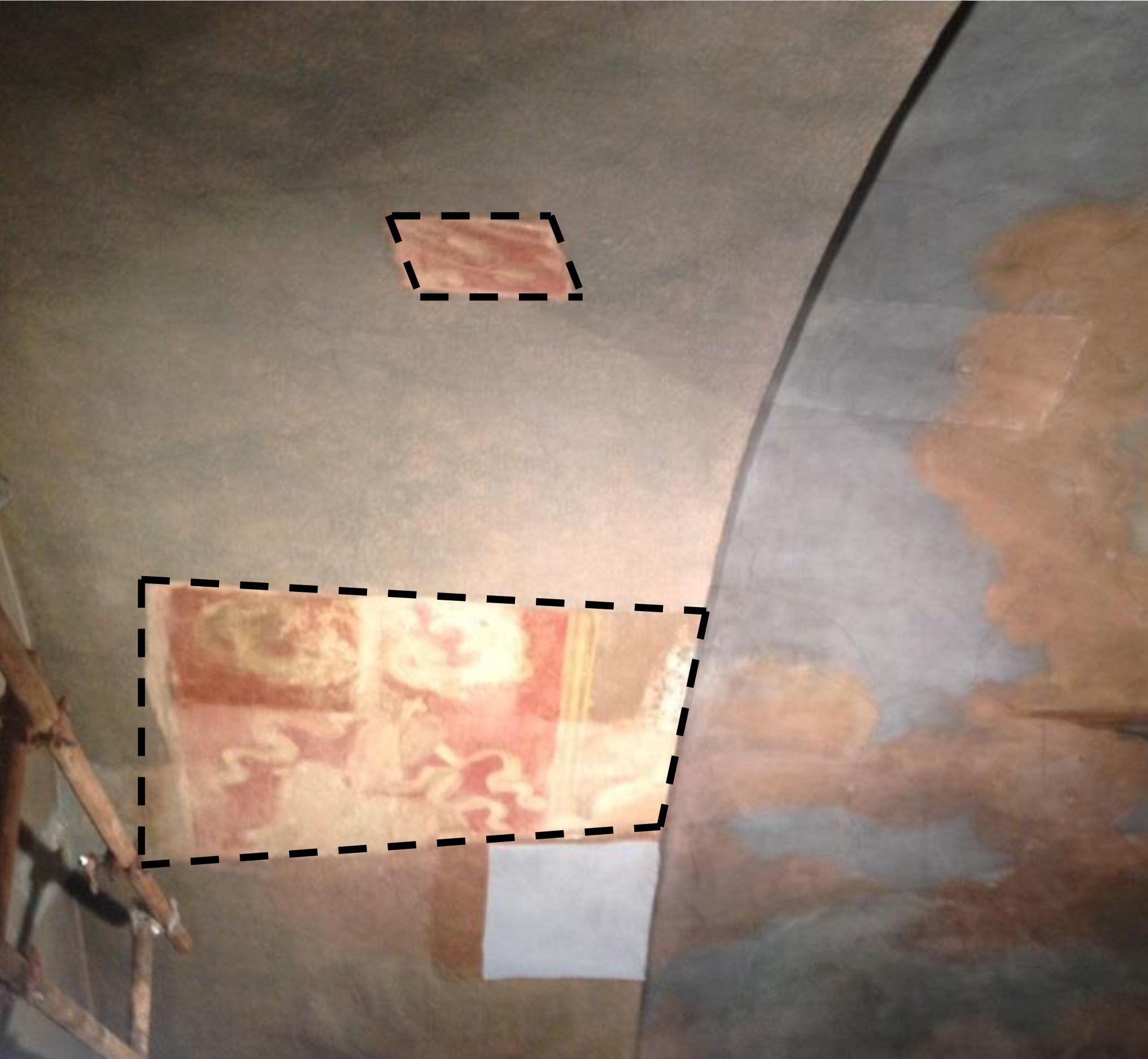Un importante recupero ha riguardato il fascione decorativo che accompagna l’arcone della semicalotta absidale, con il ritrovamento di un motivo a candelabra su fondo rosso e ha riguardato il recupero delle cornici delle pannellature a spicchi della cupola centrale.