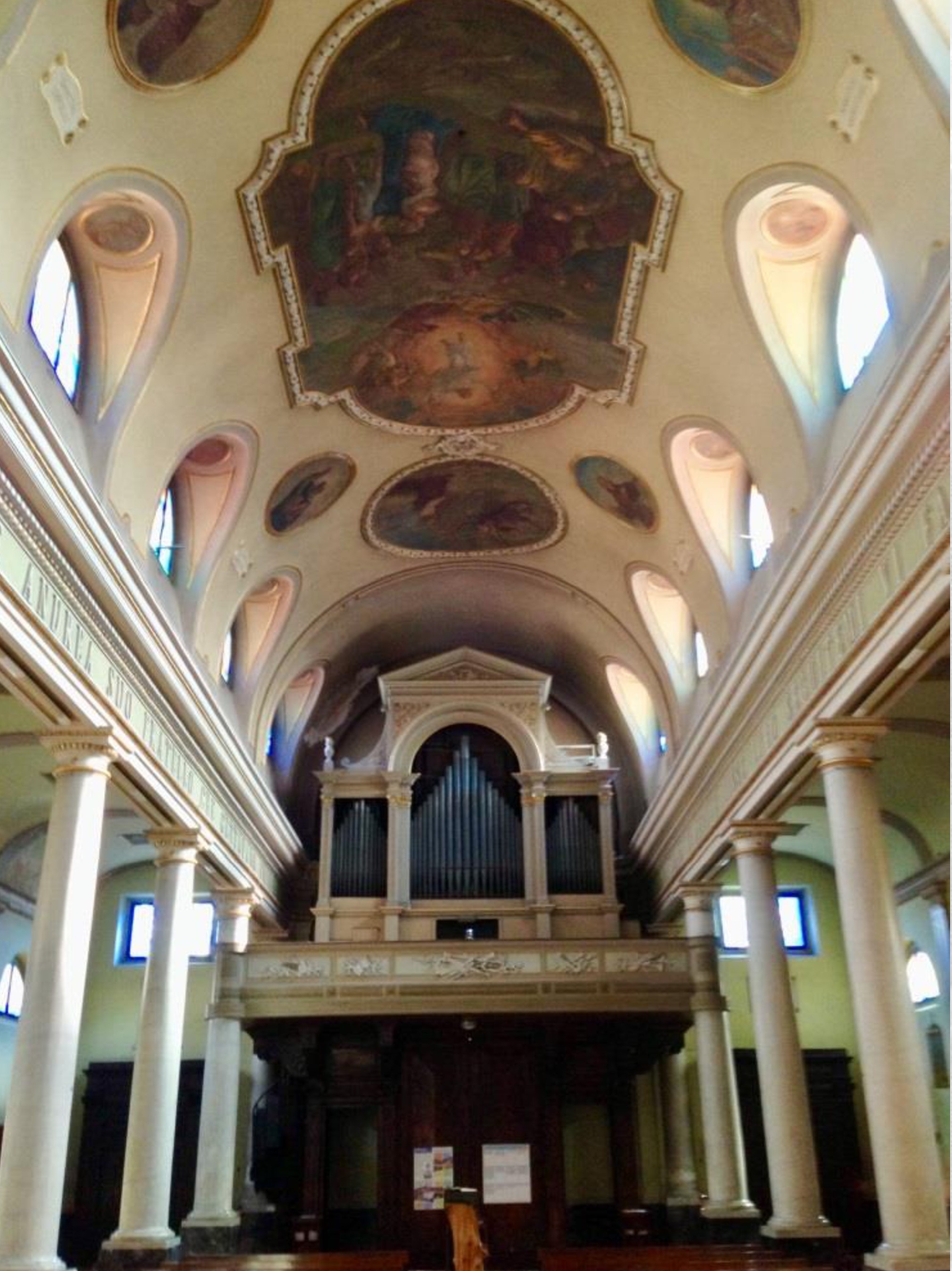 È stato recuperato l’apparato decorativo coevo agli affreschi del Volonterio (1921) della cappella della Madonna e le due campate di testa delle navatelle laterali. Nelle altre campate è stato realizzato un restauro di tipo conservativo con accompagnamento cromatico/tonale delle superfici con le tinte originali del Volonterio.