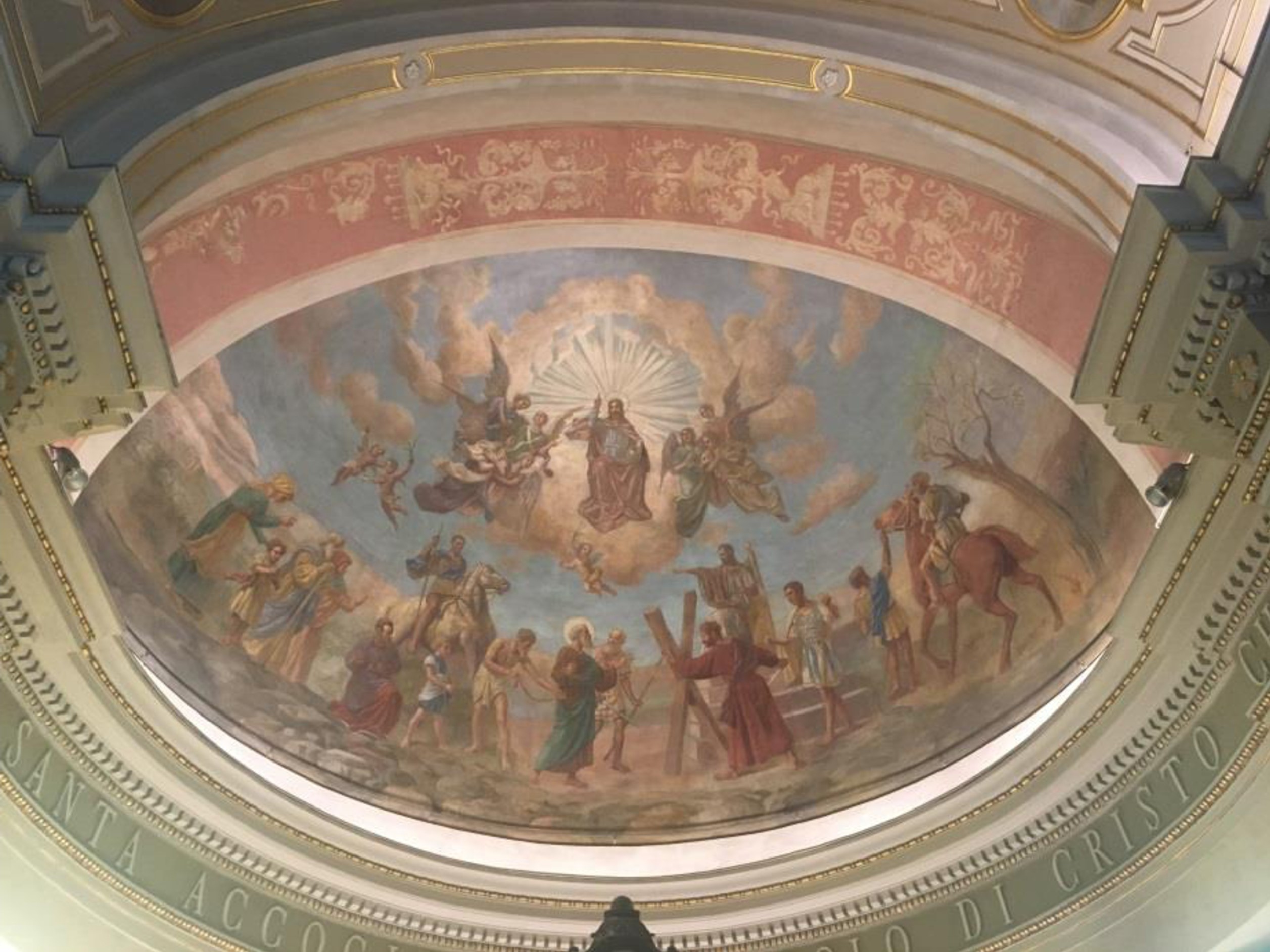 Gli affreschi della semicalotta absidale, le specchiature figurative degli arconi e i pennacchi della cupola sono stati oggetto di un restauro conservativo tradizionale.
