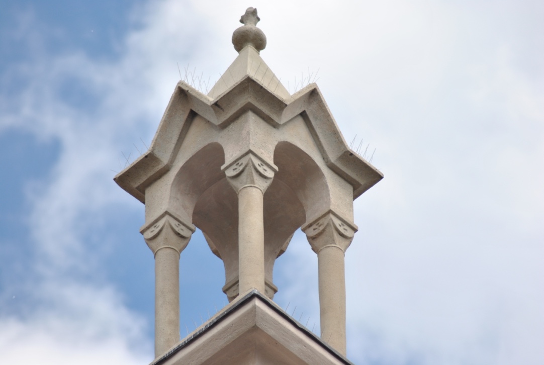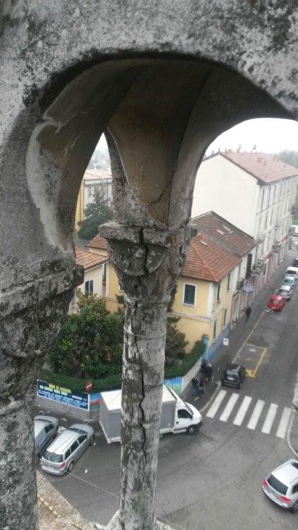 L’urgente situazione di pericolo è stata risolta con un primo intervento di messa in sicurezza delle edicole, della croce e della cornice di sottogronda .